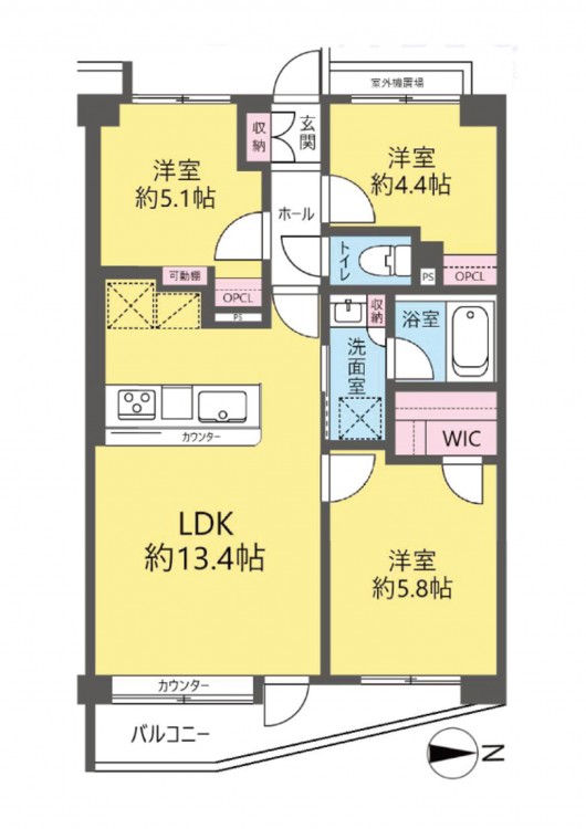 吉川駅徒歩4分、5回東向き・角部屋、3LDK+WIC